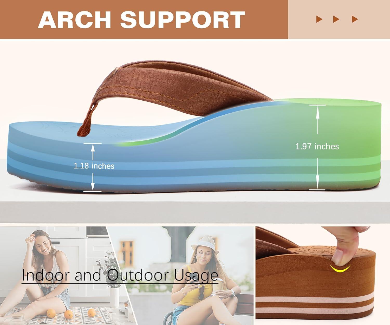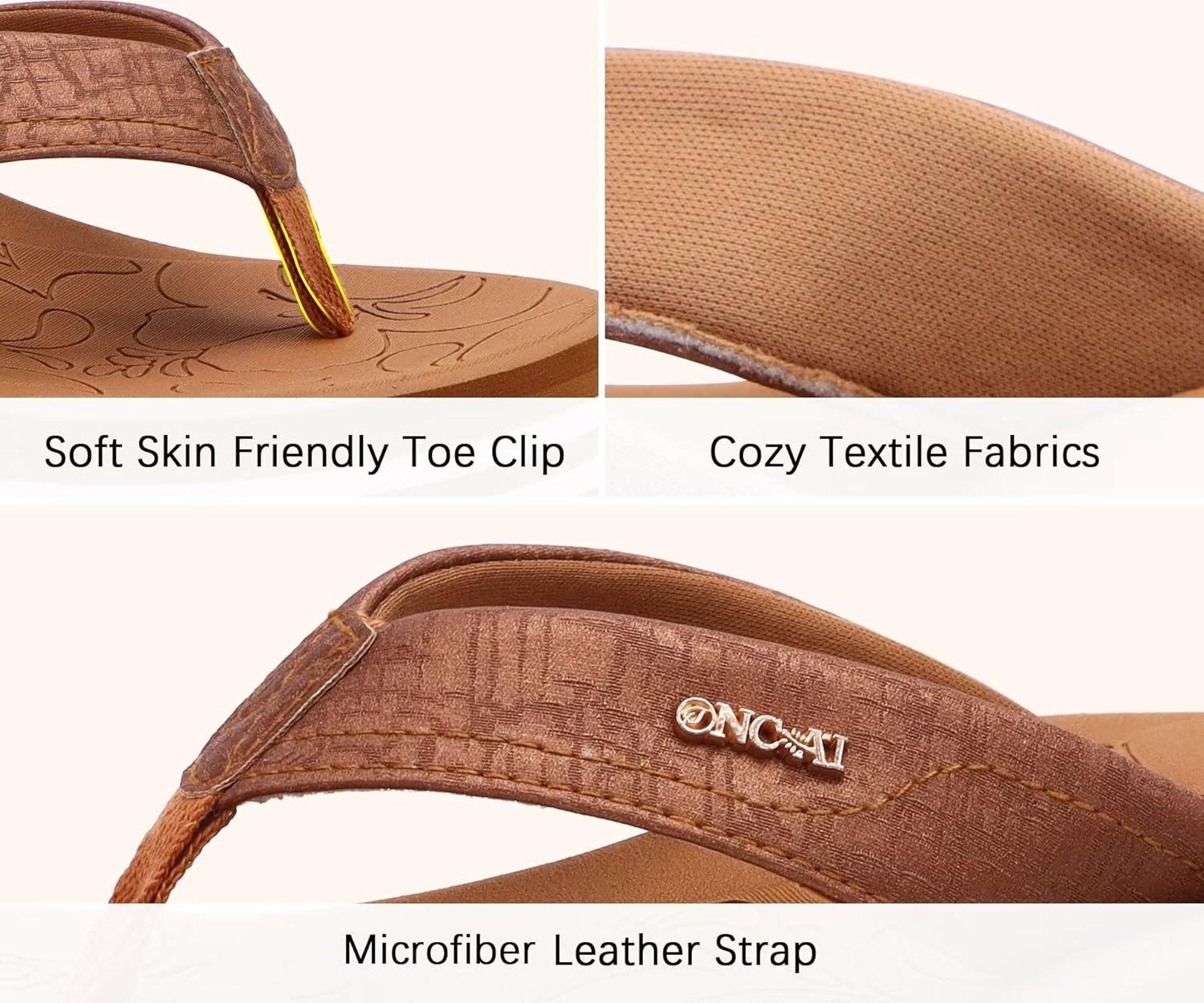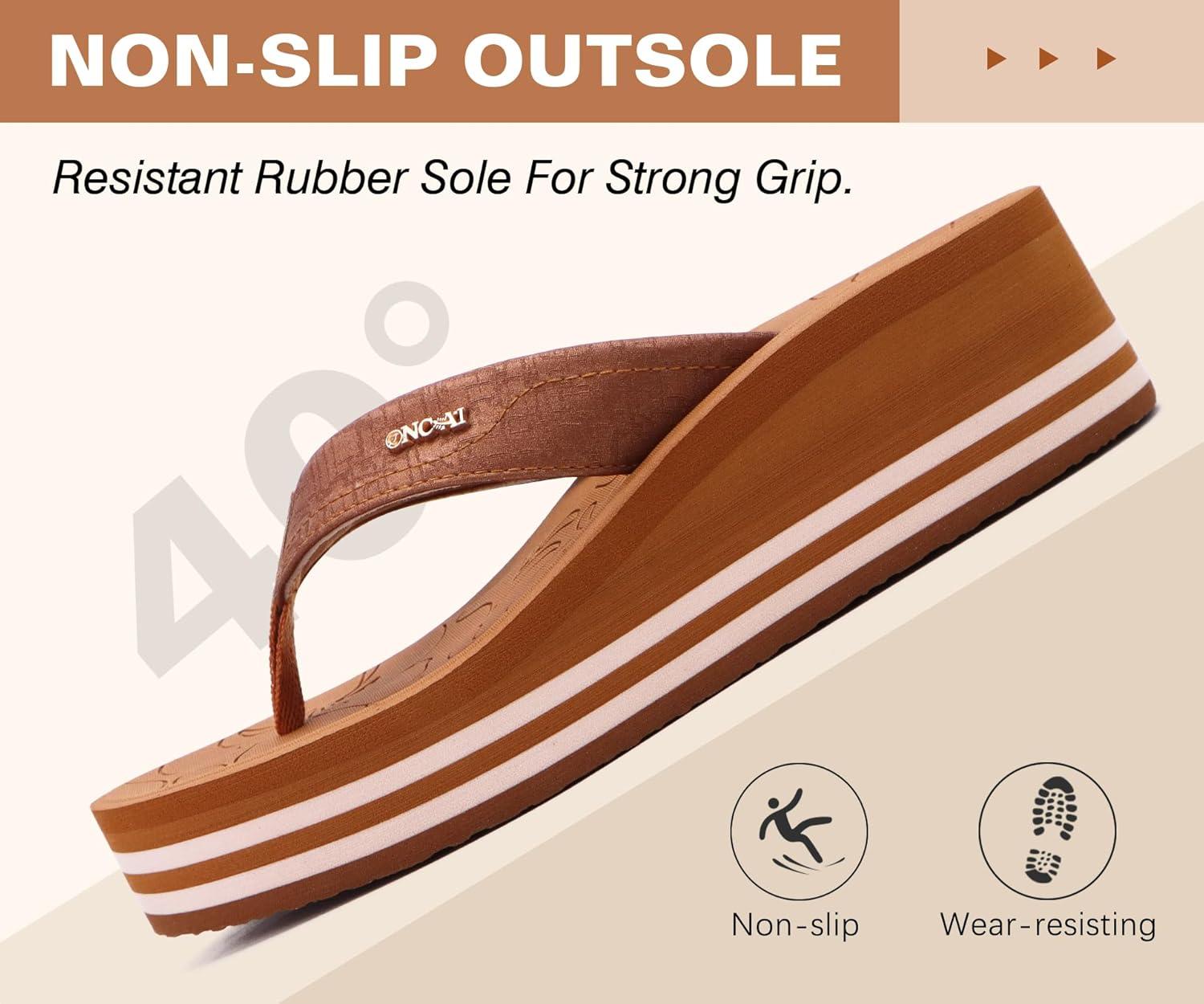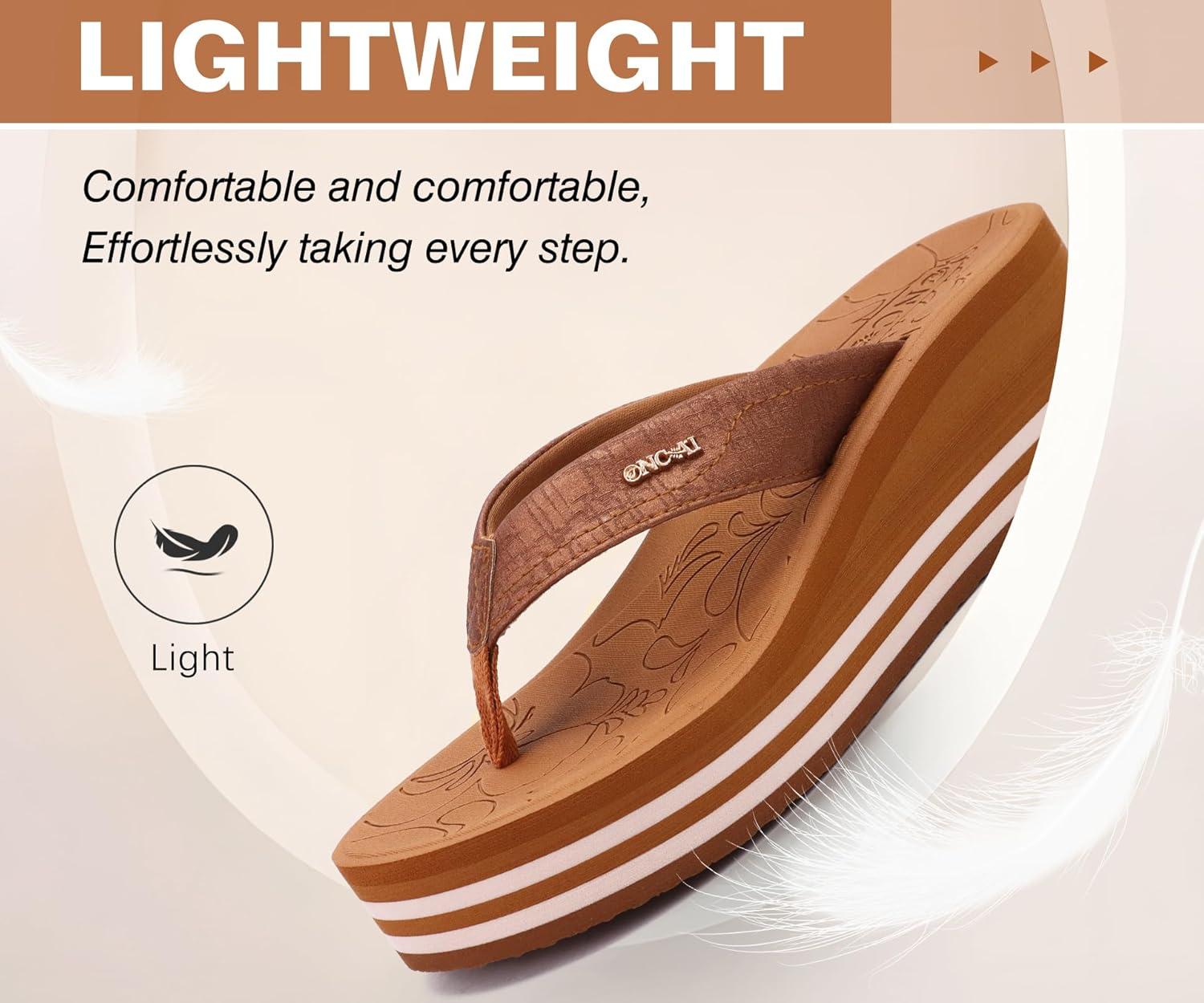 ONCAI Women’s Platform Wedge Flip Flops Trendy Dressy Womans Summer Flatform Sandals with Comfortable Walking Outdoor Rubber Soles (US Size 5-11)(Khaki(regular Size))
