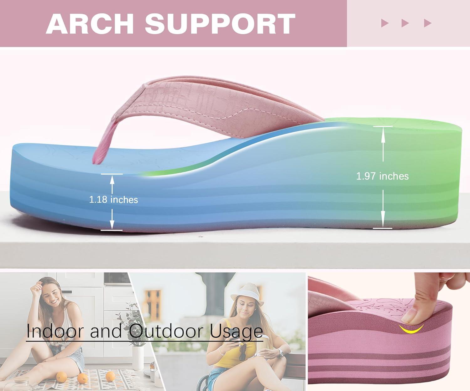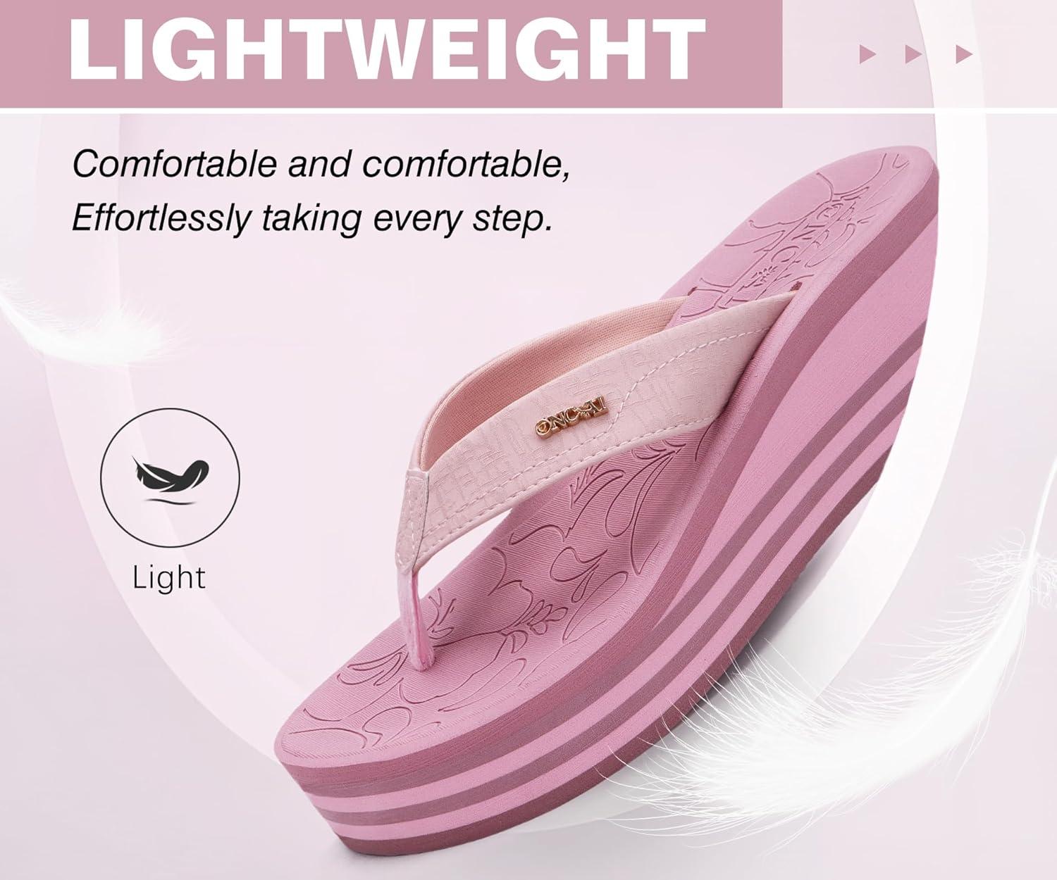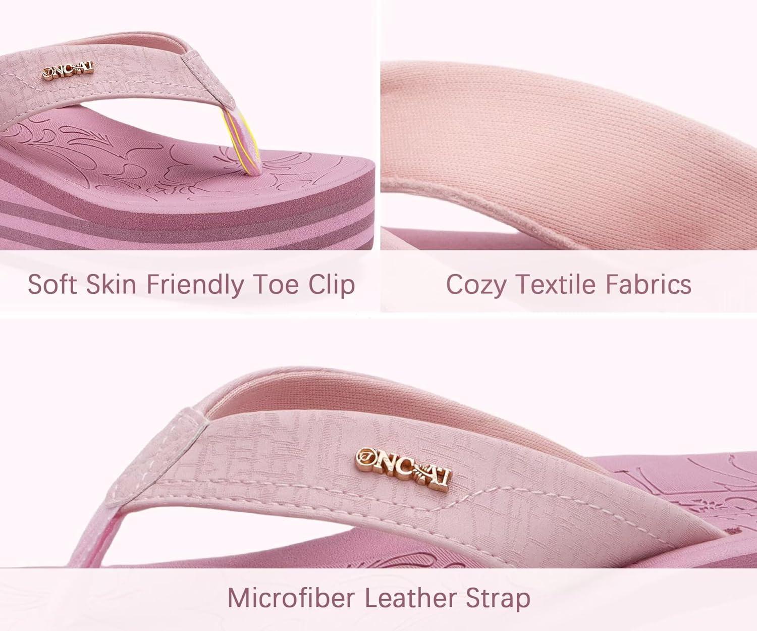 ONCAI Women’s Platform Wedge Flip Flops Trendy Dressy Womans Summer Flatform Sandals with Comfortable Walking Outdoor Rubber Soles (US Size 5-11)(Pink(runs Big size Down))