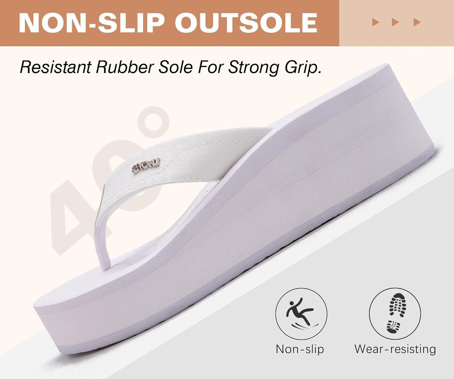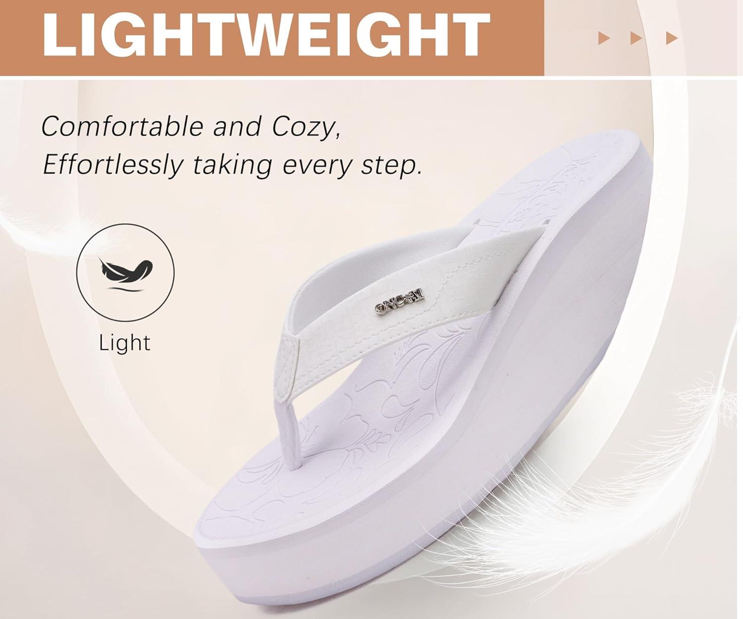 Get the ONCAI Women’s Platform Wedge Flip Flops Trendy Dressy Womans Summer Flatform Sandals with Comfortable Walking Outdoor Rubber Soles (US Size 5-11)(White(regular Size)) you want at a discounted price during our markdown sale event.