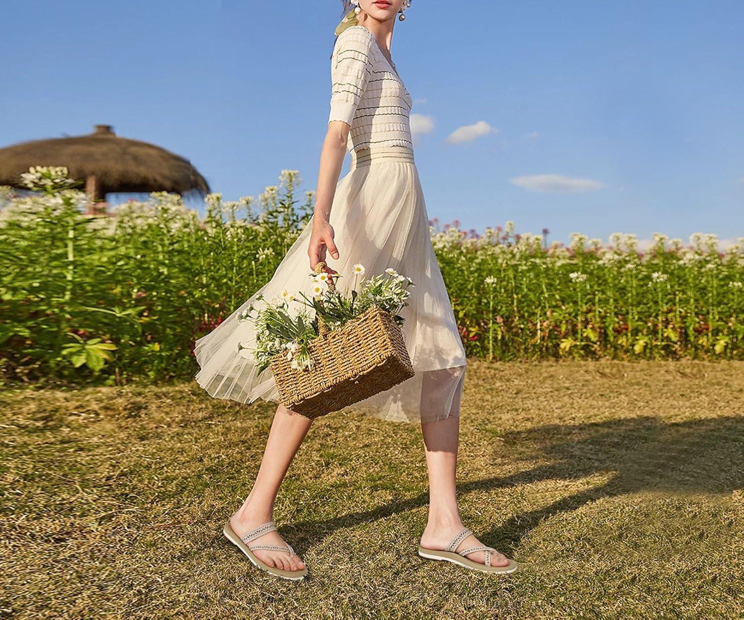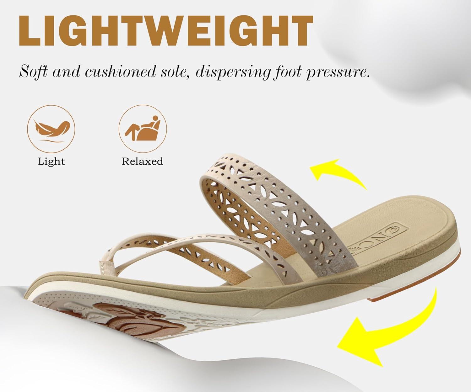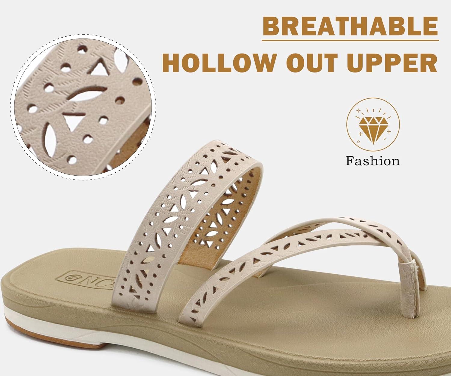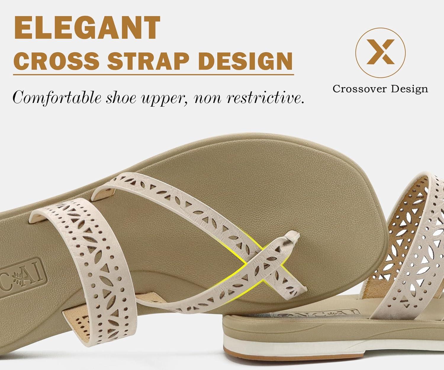 ONCAI Women’s Slide Sandals Trendy Square Summer Flat Dressy Sandals for Women 2025 Cross Strappy Open Split-Toe Ring with Slip-on Rubber Soles(Fashion Beige)