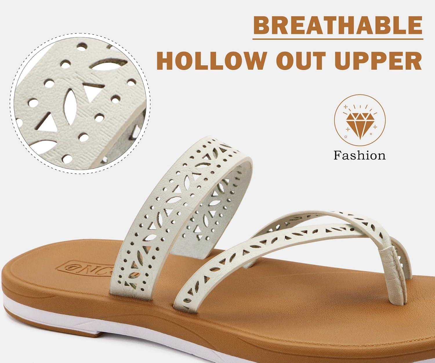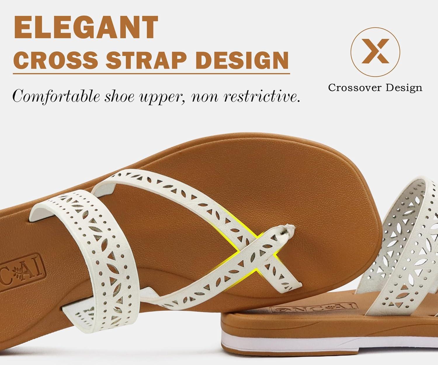 ONCAI Women’s Slide Sandals Trendy Square Summer Flat Dressy Sandals for Women 2025 Cross Strappy Open Split-Toe Ring with Slip-on Rubber Soles(Fashion Khaki Beige)