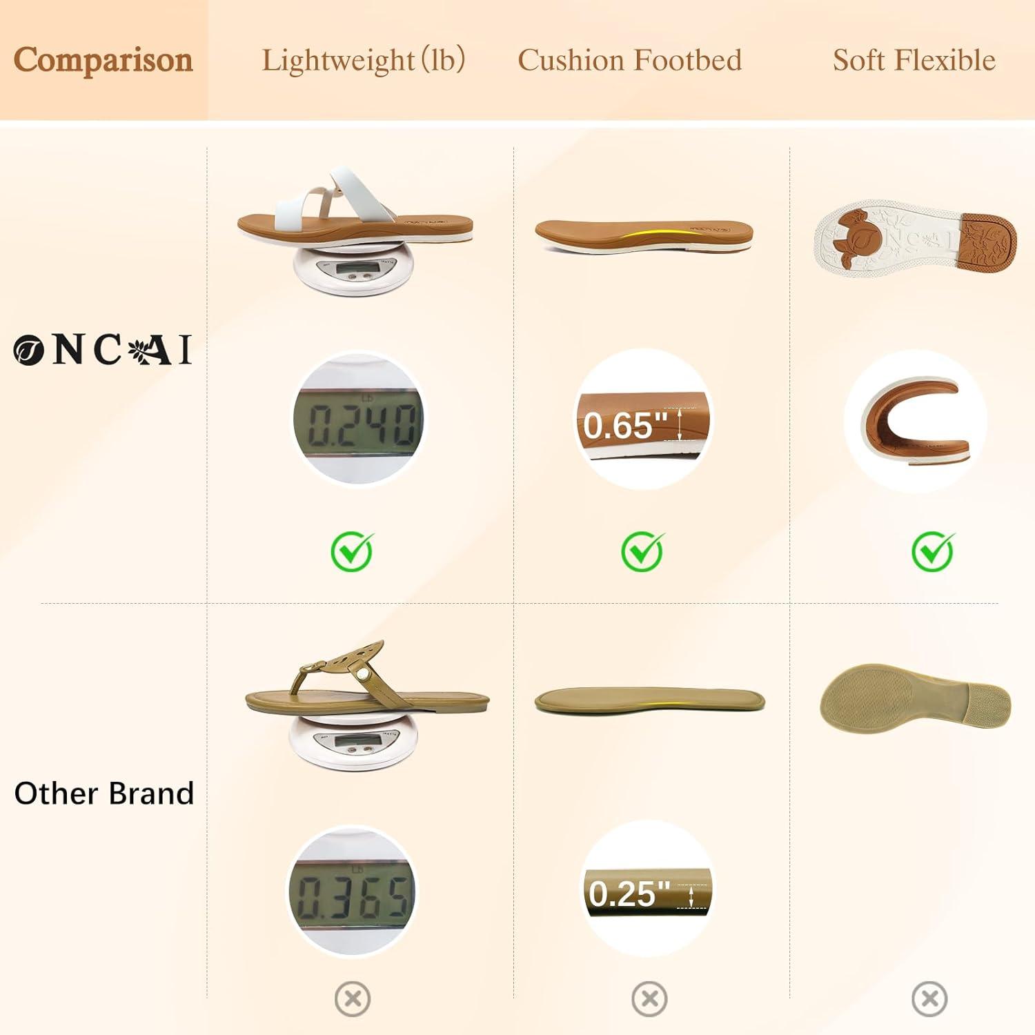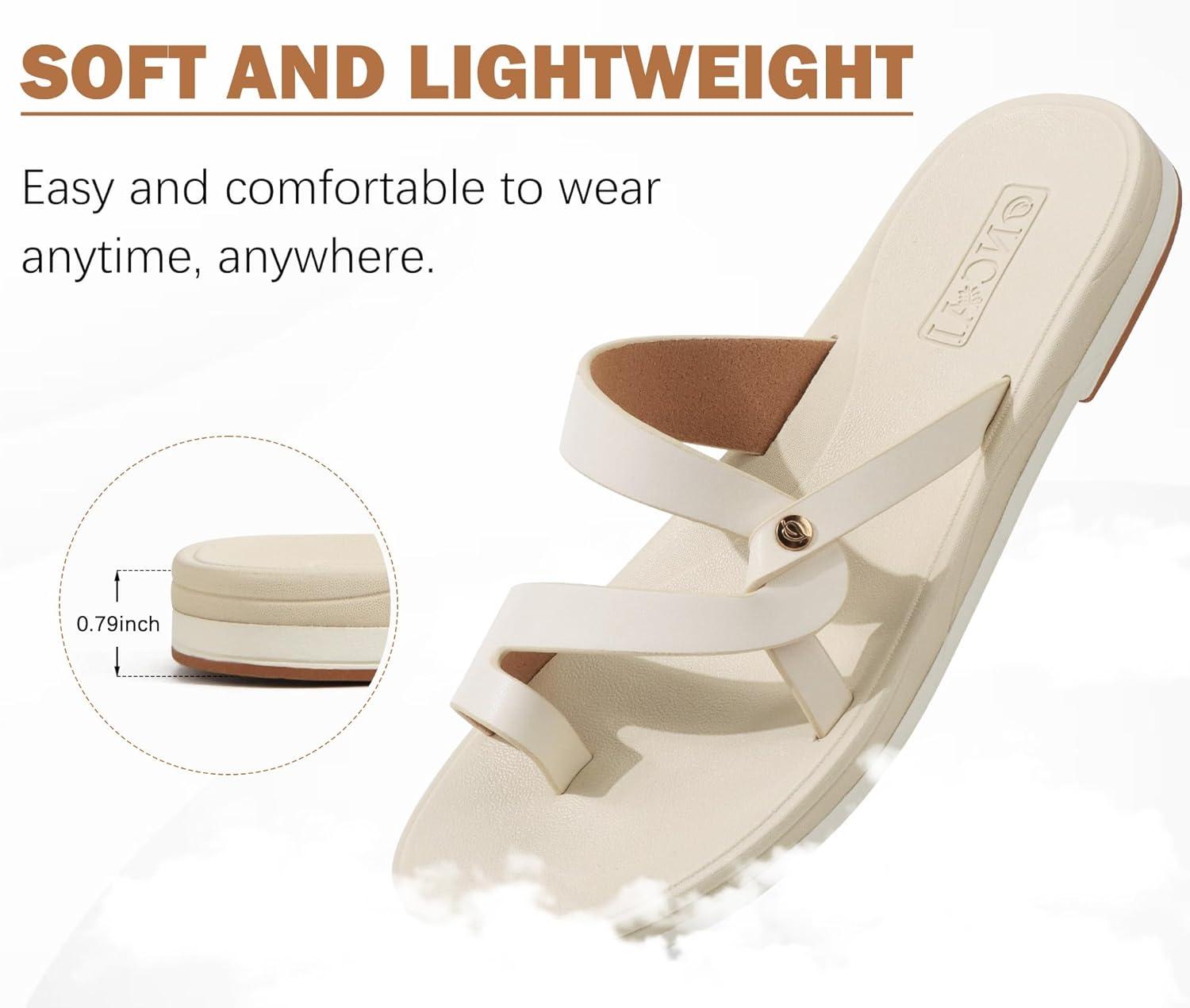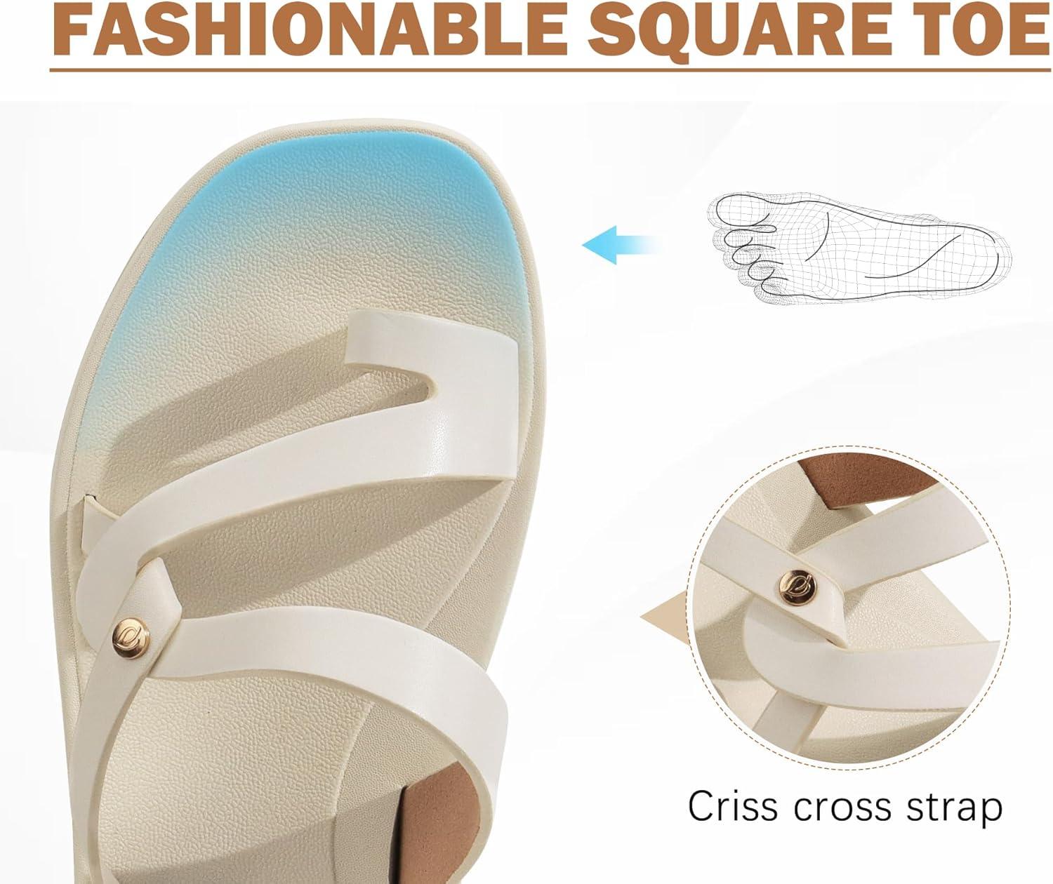 ONCAI Women’s Slide Sandals Trendy Square Summer Flat Dressy Sandals for Women 2025 Cross Strappy Open Split-Toe Ring with Slip-on Rubber Soles(Off-white(run Small size Up))