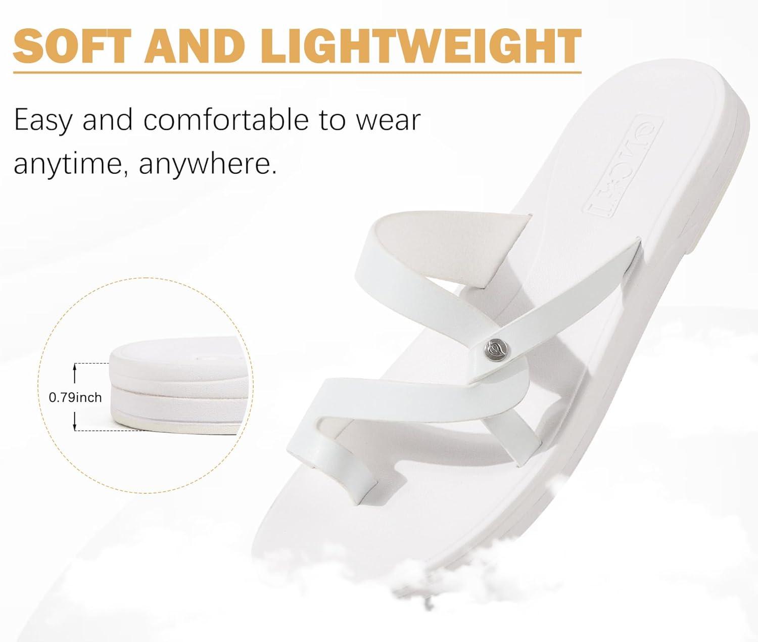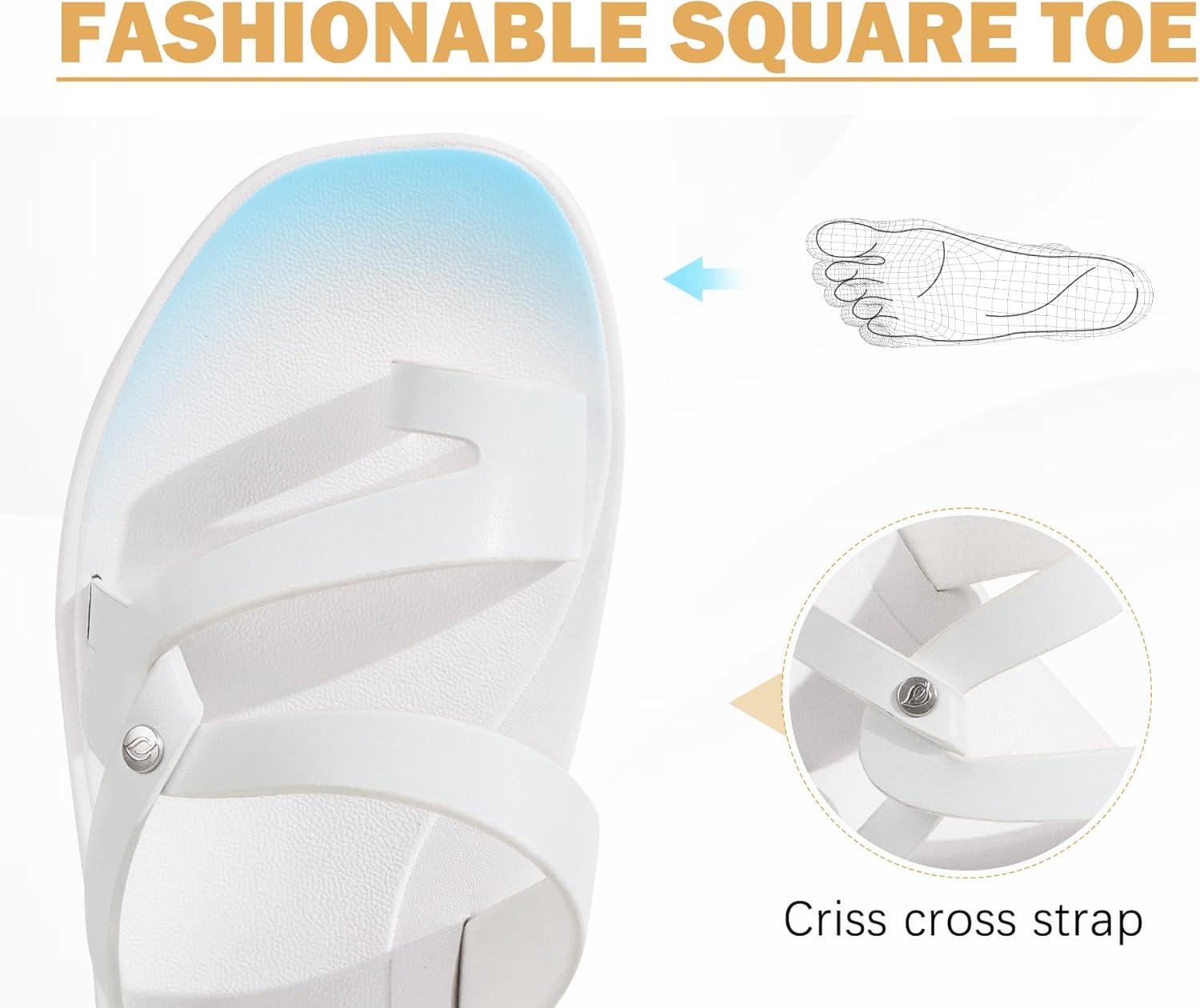 ONCAI Women’s Slide Sandals Trendy Square Summer Flat Dressy Sandals for Women 2025 Cross Strappy Open Split-Toe Ring with Slip-on Rubber Soles(White(run Small size Up))