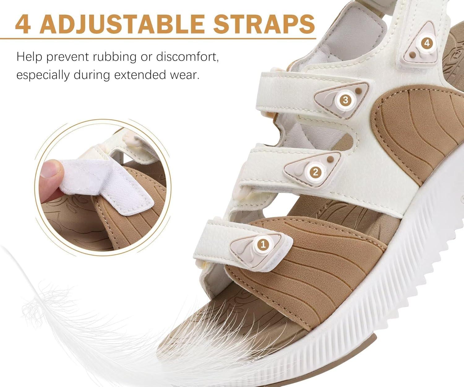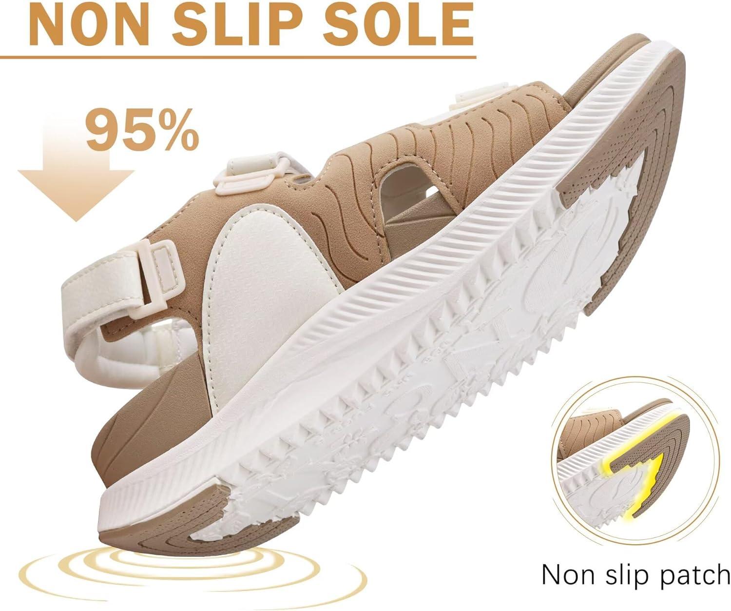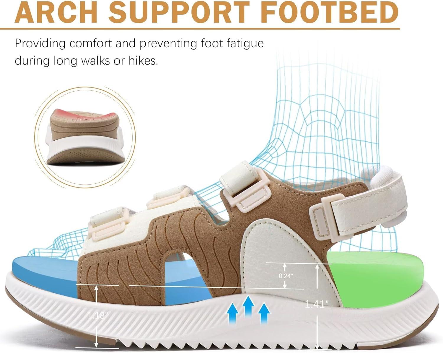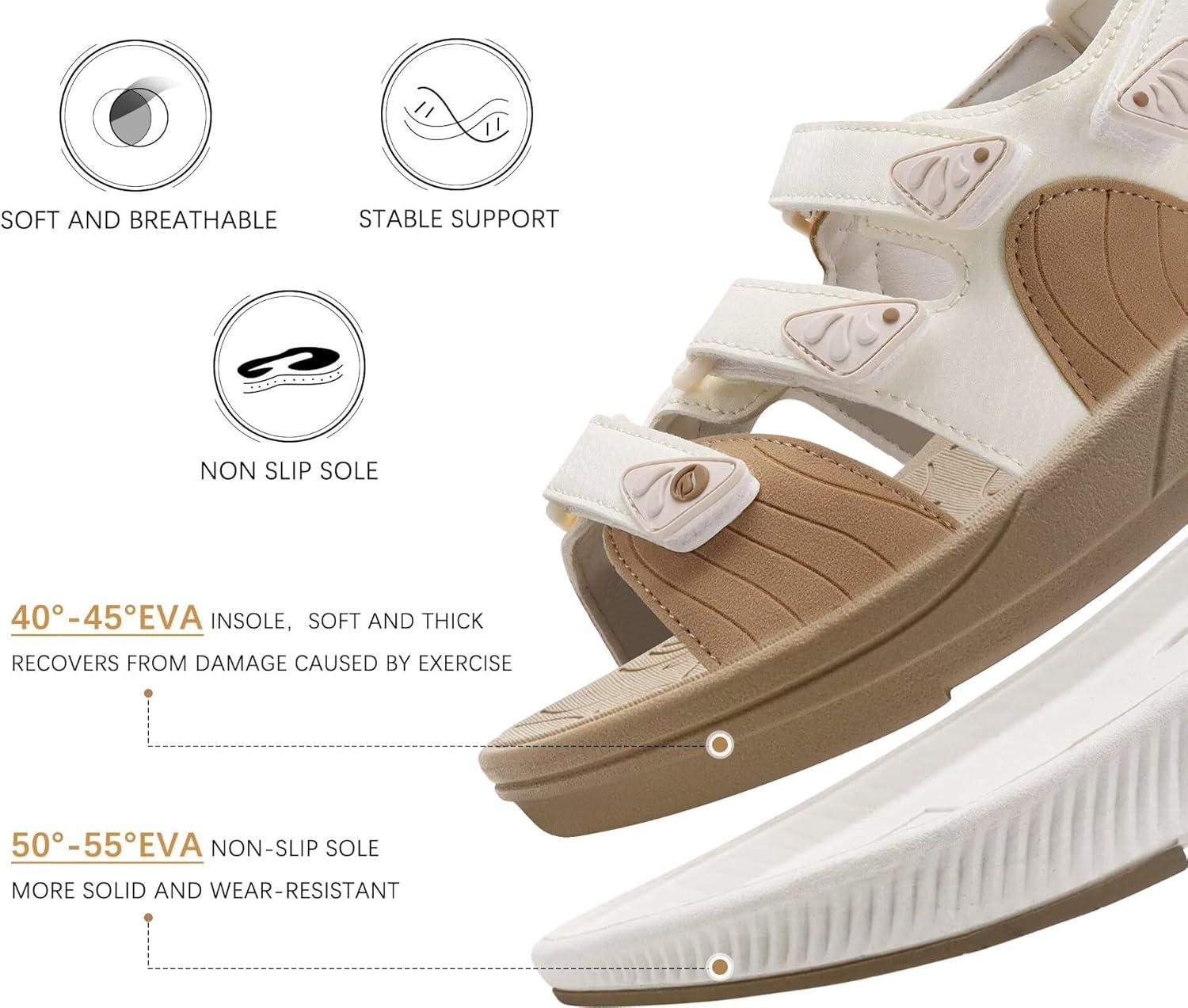 ONCAI Women’s Walking Sandals with Arch Support Hiking Athletic Sandals Woman Outdoor Cushion Footbed Water Summer Thick Rubber Soles Sandalias Mujer Size 6-12(Beige/White)