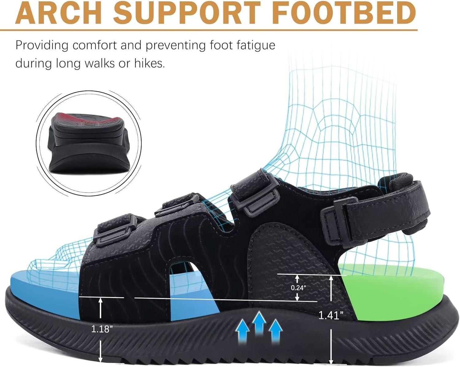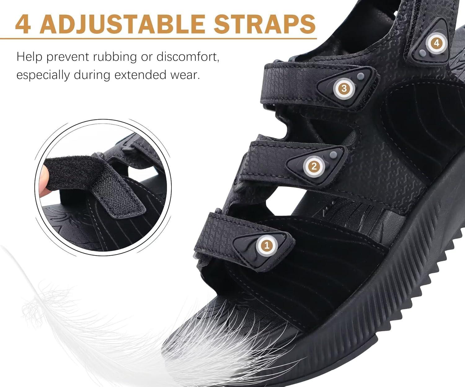 ONCAI Women’s Walking Sandals with Arch Support Hiking Athletic Sandals Woman Outdoor Cushion Footbed Water Summer Thick Rubber Soles Sandalias Mujer Size 6-12(Black)