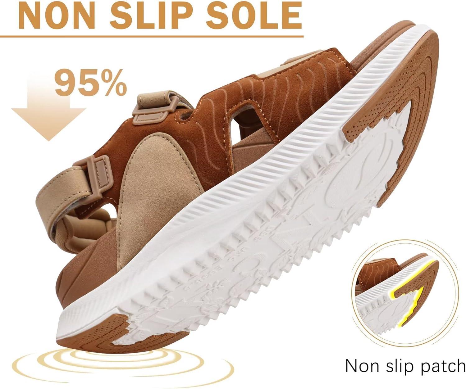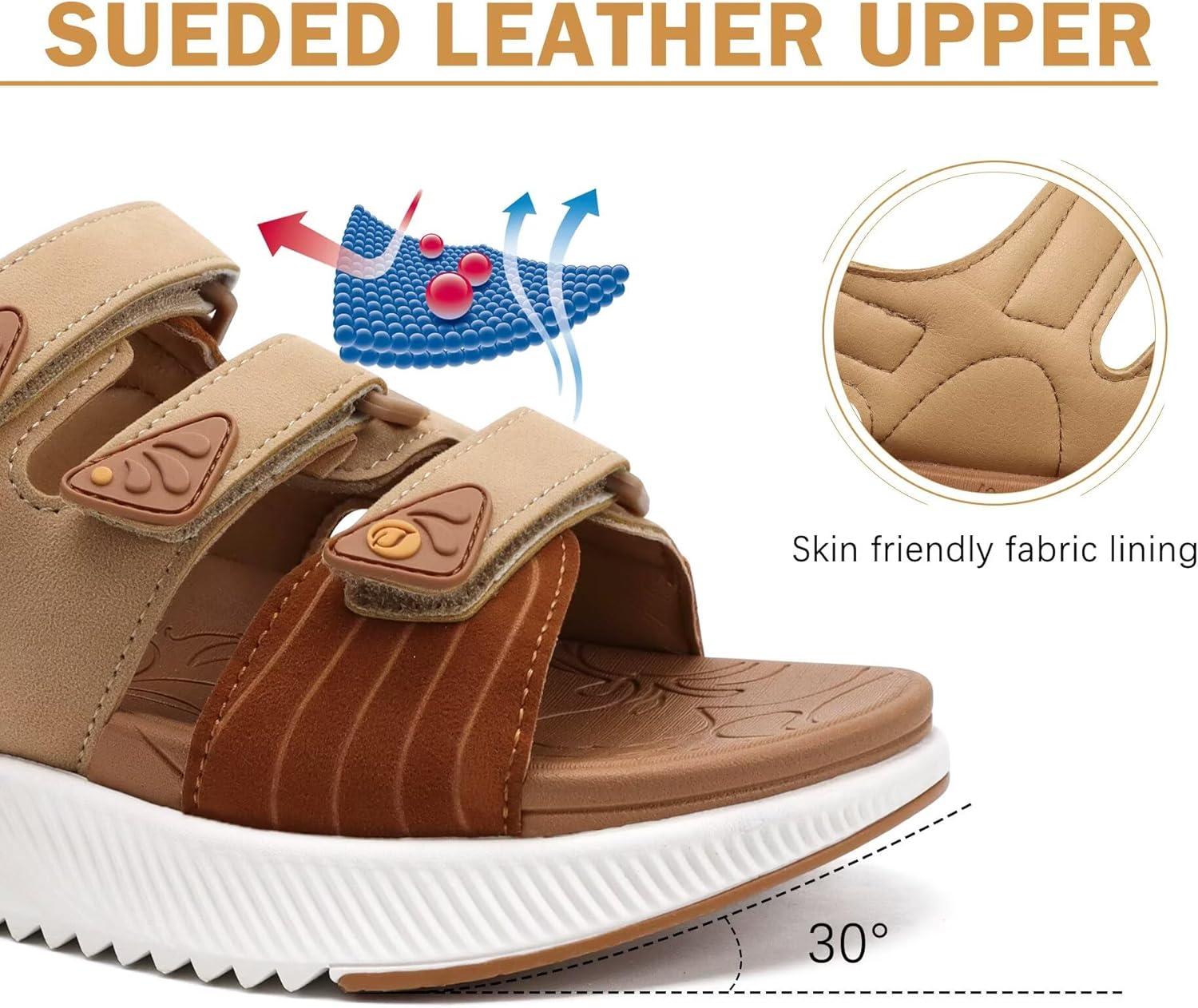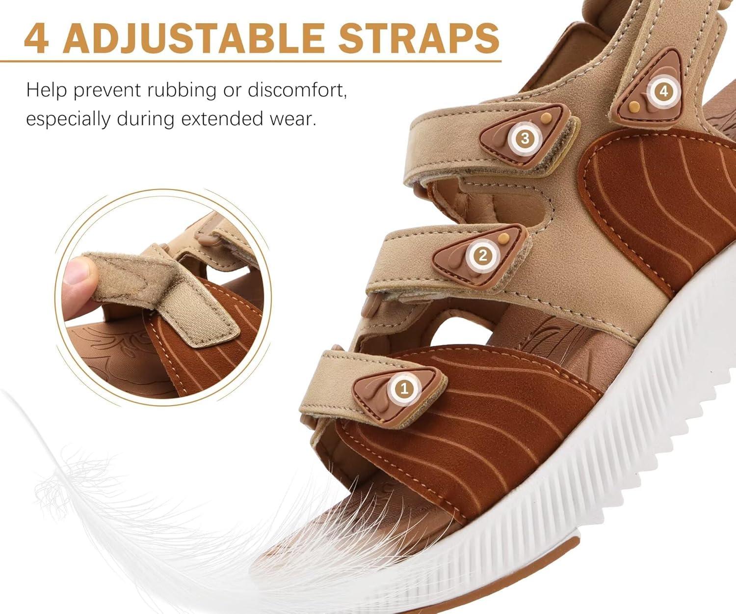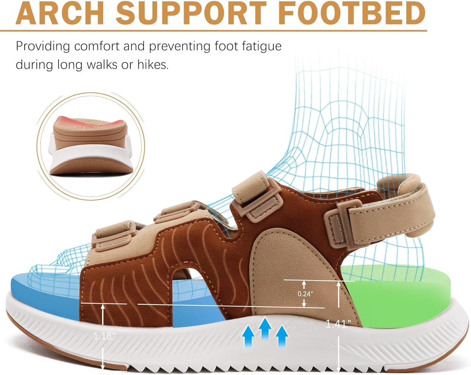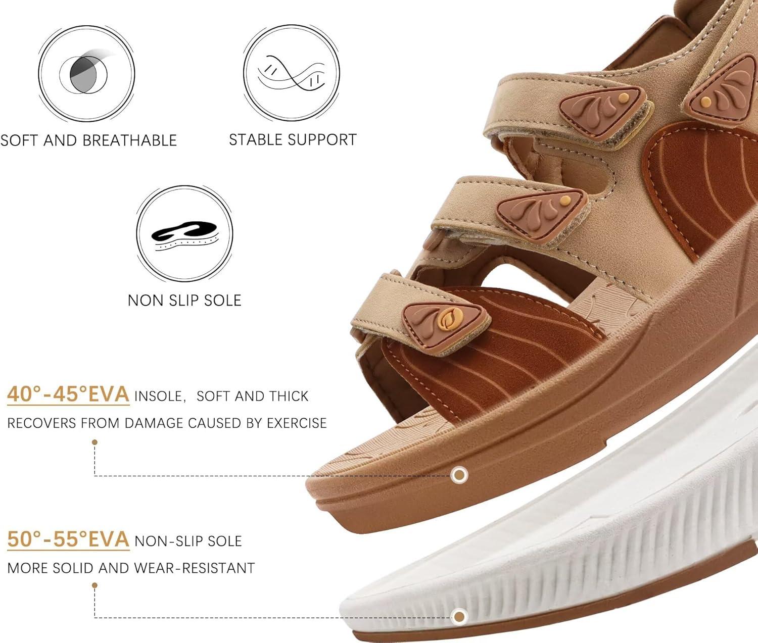 ONCAI Women’s Walking Sandals with Arch Support Hiking Athletic Sandals Woman Outdoor Cushion Footbed Water Summer Thick Rubber Soles Sandalias Mujer Size 6-12(Khaki/White)