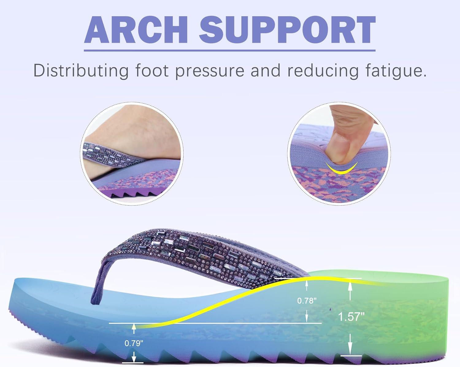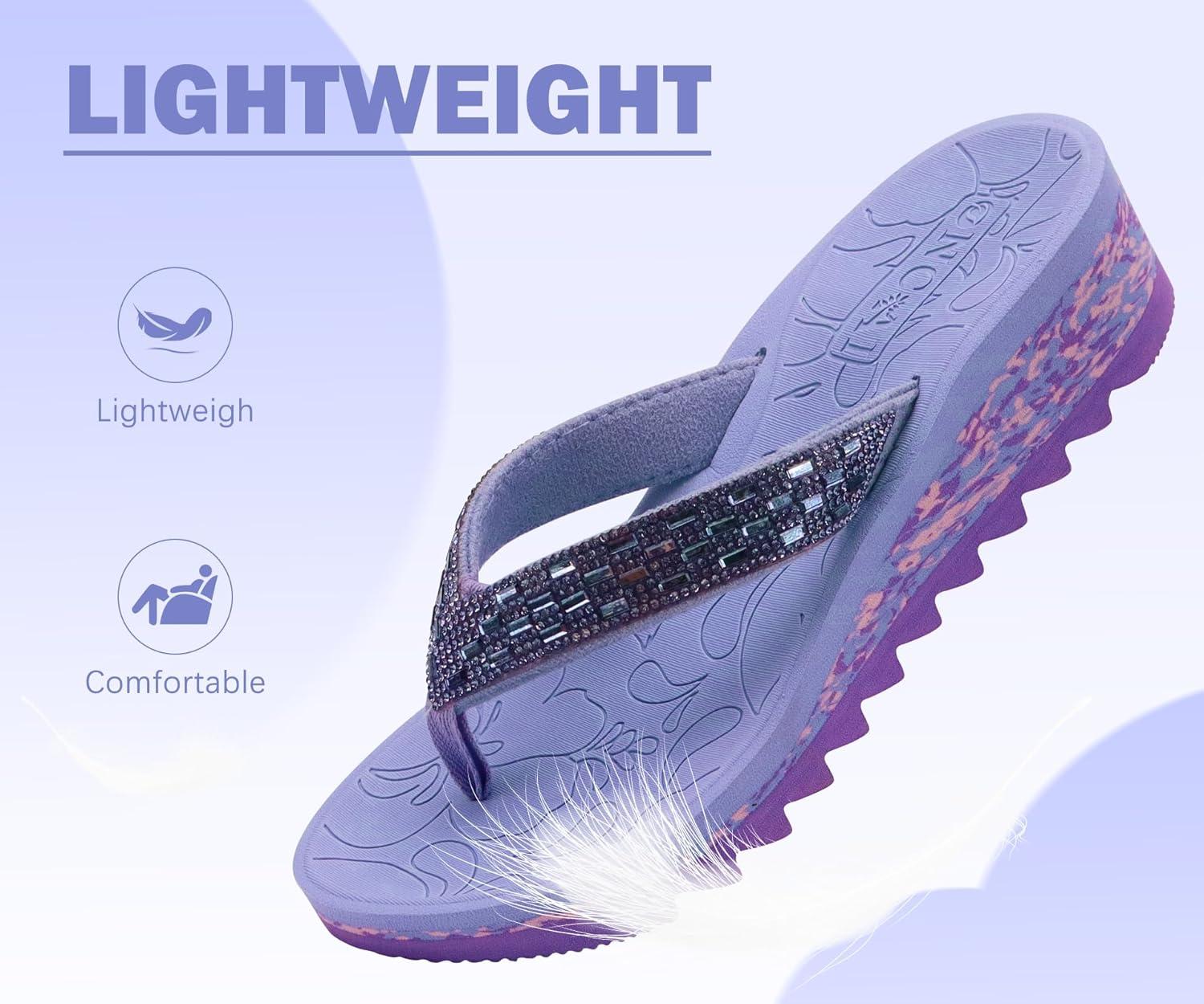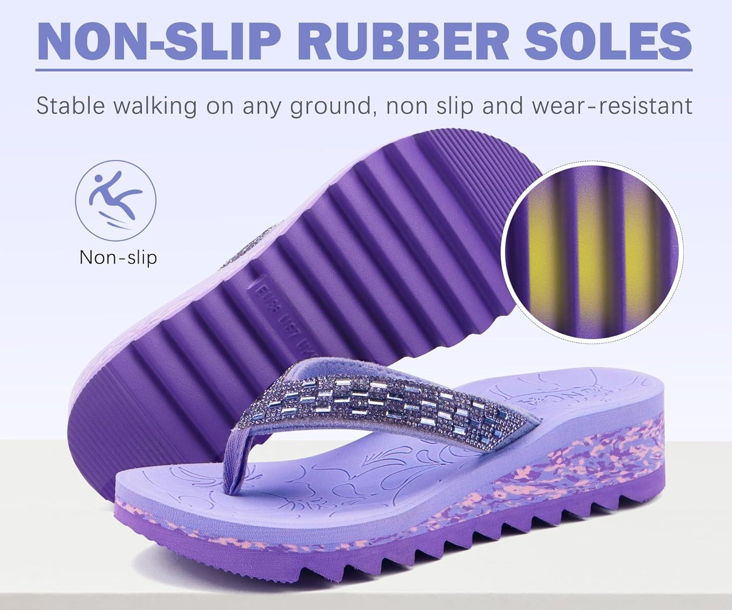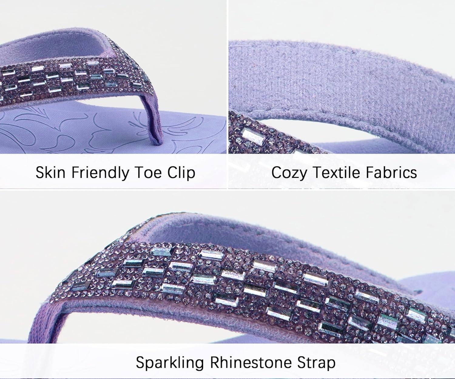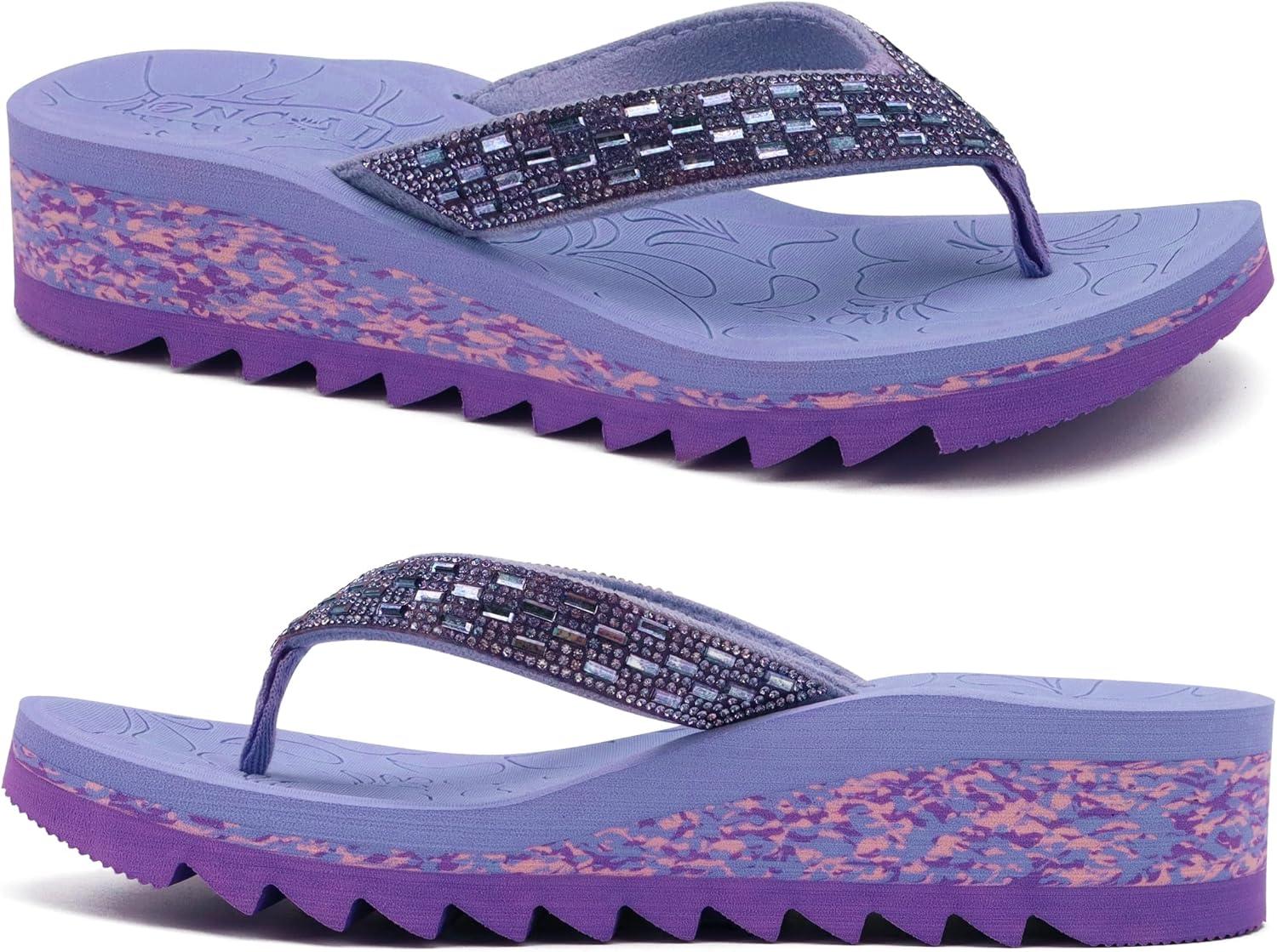 ONCAI Women’s Wedge Flip Flops with Rhinestone,Recovery Dressy Walking Sandals for Women with Comfortable Arch Support Cushion Yoga Mat Summer Rubber Soles(US Size 5-11)(Purple)
